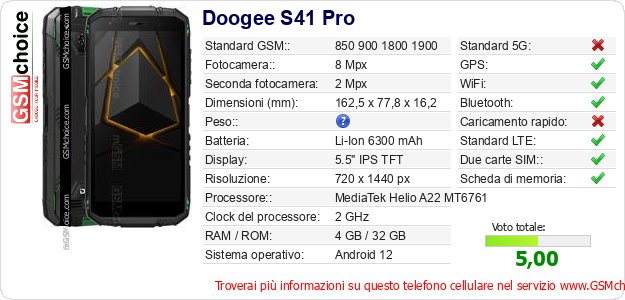 Dati del telefono cellulare Doogee S41 Pro sul tuo sito