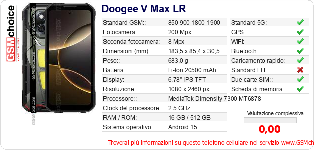 Dati del telefono cellulare Doogee V Max LR sul tuo sito