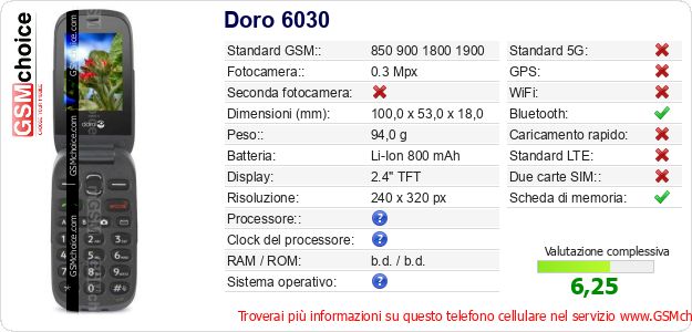 Dati del telefono cellulare Doro 6030 sul tuo sito