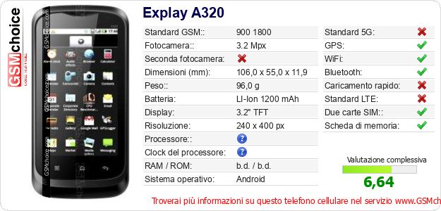Dati del telefono cellulare Explay A320 sul tuo sito