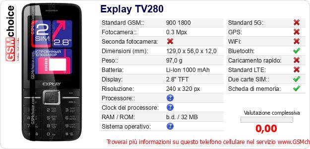 Dati del telefono cellulare Explay TV280 sul tuo sito
