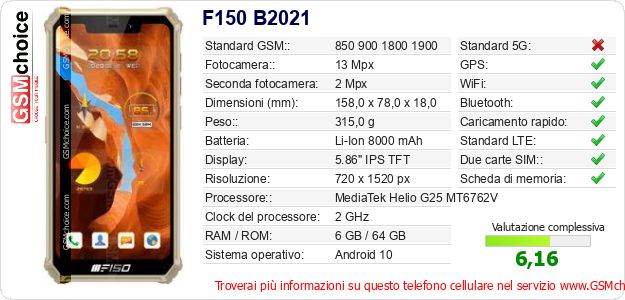 Dati del telefono cellulare F150 B2021 sul tuo sito