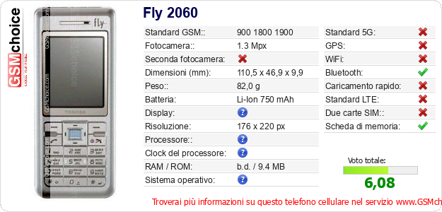 Dati del telefono cellulare Fly 2060 sul tuo sito