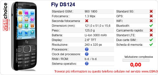Dati del telefono cellulare Fly DS124 sul tuo sito