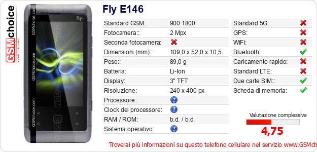 Dati del telefono cellulare Fly E146 sul tuo sito