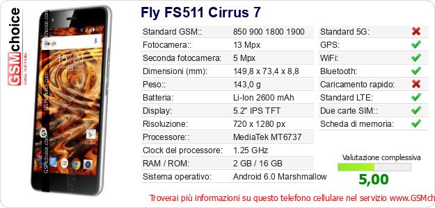 Dati del telefono cellulare Fly FS511 Cirrus 7 sul tuo sito