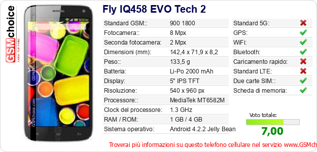 Dati del telefono cellulare Fly IQ458 EVO Tech 2 sul tuo sito
