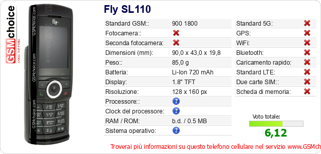 Dati del telefono cellulare Fly SL110 sul tuo sito