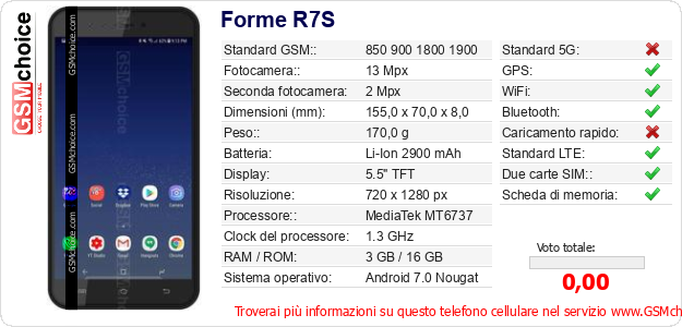 Dati del telefono cellulare Forme R7S sul tuo sito