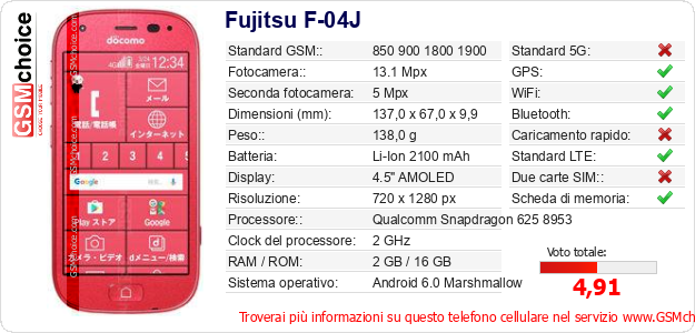 Dati del telefono cellulare Fujitsu F-04J sul tuo sito