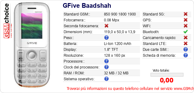 Dati del telefono cellulare GFive Baadshah sul tuo sito