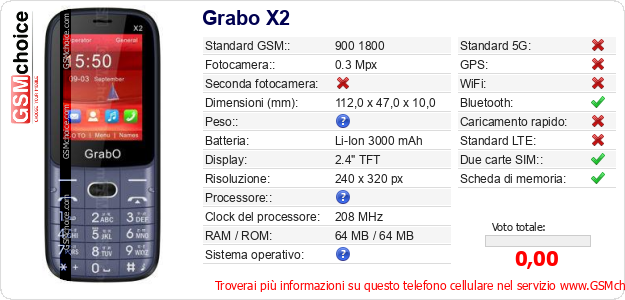 Dati del telefono cellulare Grabo X2 sul tuo sito