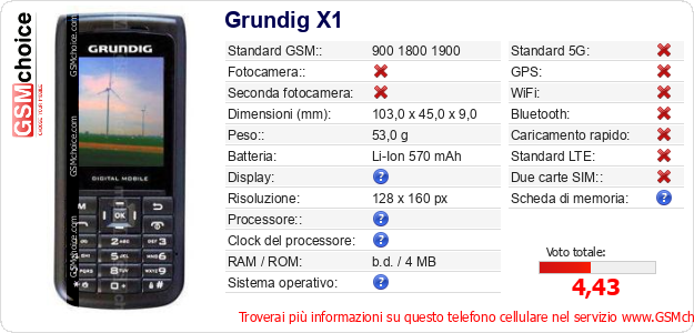 Dati del telefono cellulare Grundig X1 sul tuo sito