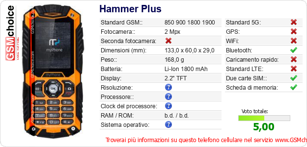 Dati del telefono cellulare Hammer Plus sul tuo sito