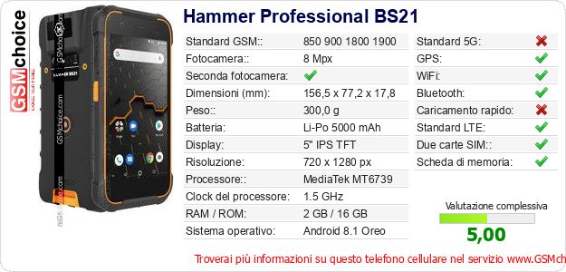 Dati del telefono cellulare Hammer Professional BS21 sul tuo sito