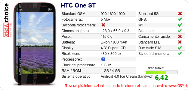 Dati del telefono cellulare HTC One ST sul tuo sito