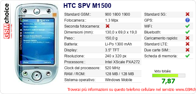 Dati del telefono cellulare HTC SPV M1500 sul tuo sito