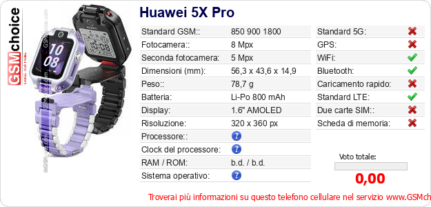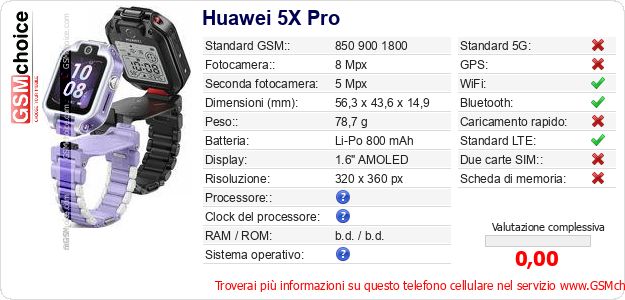 Dati del telefono cellulare Huawei 5X Pro sul tuo sito