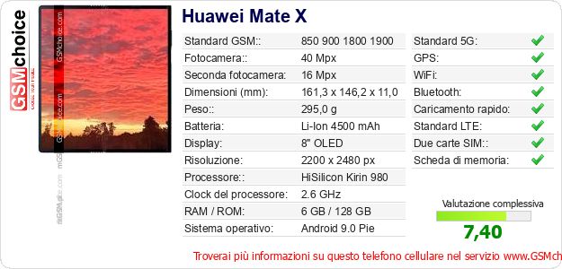 Dati del telefono cellulare Huawei Mate X sul tuo sito
