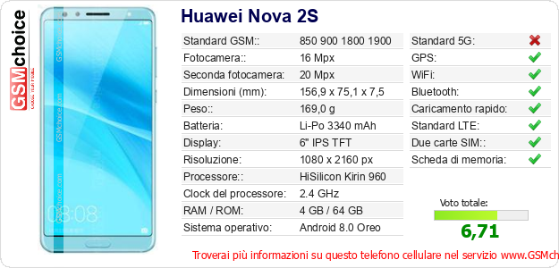 Dati del telefono cellulare Huawei Nova 2S sul tuo sito