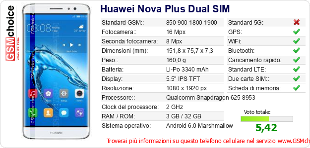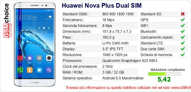 Dati del telefono cellulare Huawei Nova Plus Dual SIM sul tuo sito