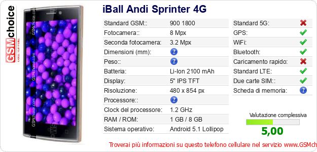 Dati del telefono cellulare iBall Andi Sprinter 4G sul tuo sito