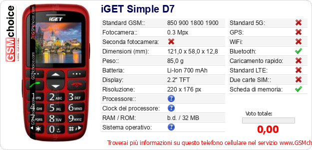 Dati del telefono cellulare iGET Simple D7 sul tuo sito