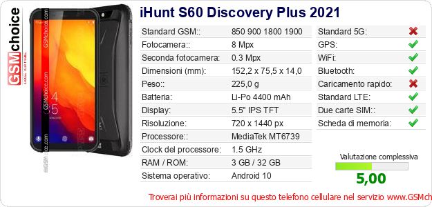 Dati del telefono cellulare iHunt S60 Discovery Plus 2021 sul tuo sito