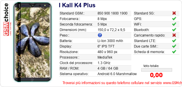 Dati del telefono cellulare I Kall K4 Plus sul tuo sito