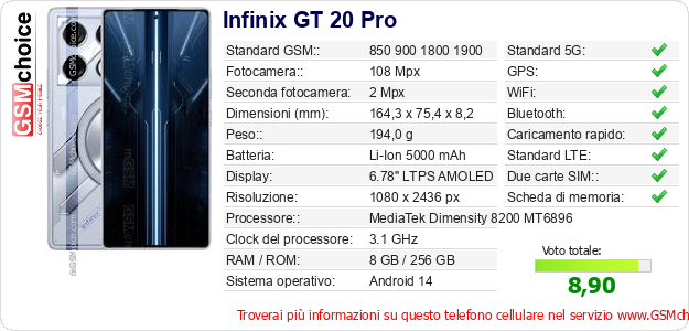 Dati del telefono cellulare Infinix GT 20 Pro sul tuo sito