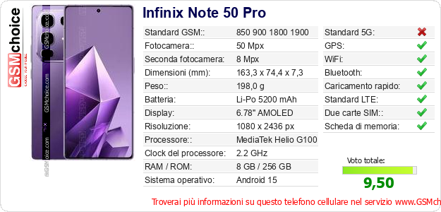 Dati del telefono cellulare Infinix Note 50 Pro sul tuo sito