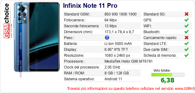 Dati del telefono cellulare Infinix Note 11 Pro sul tuo sito