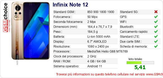 Dati del telefono cellulare Infinix Note 12 sul tuo sito