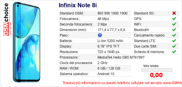 Dati del telefono cellulare Infinix Note 8i sul tuo sito