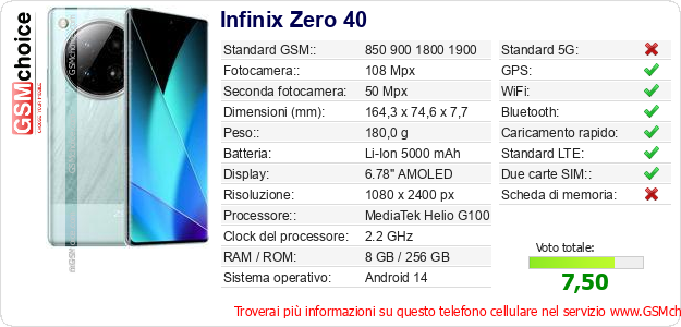 Dati del telefono cellulare Infinix Zero 40 sul tuo sito