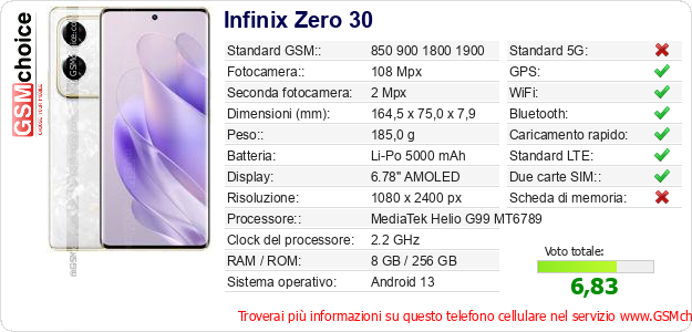 Dati del telefono cellulare Infinix Zero 30 sul tuo sito