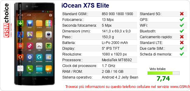 Dati del telefono cellulare iOcean X7S Elite sul tuo sito