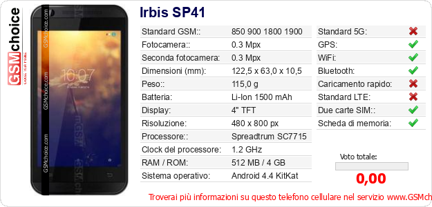 Dati del telefono cellulare Irbis SP41 sul tuo sito