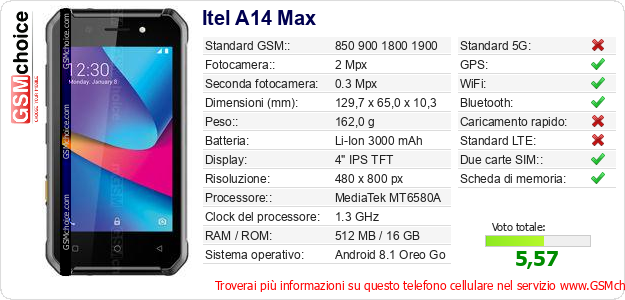 Dati del telefono cellulare Itel A14 Max sul tuo sito