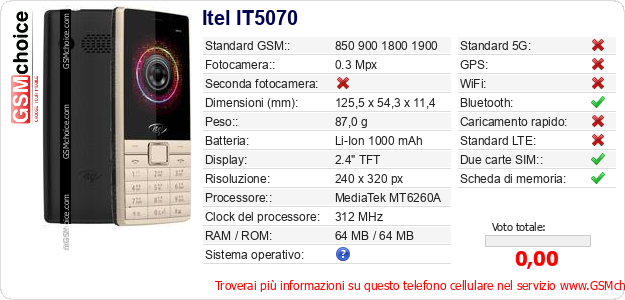 Dati del telefono cellulare Itel IT5070 sul tuo sito