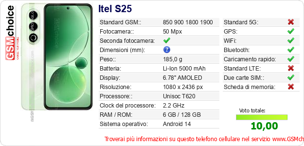 Dati del telefono cellulare Itel S25 sul tuo sito