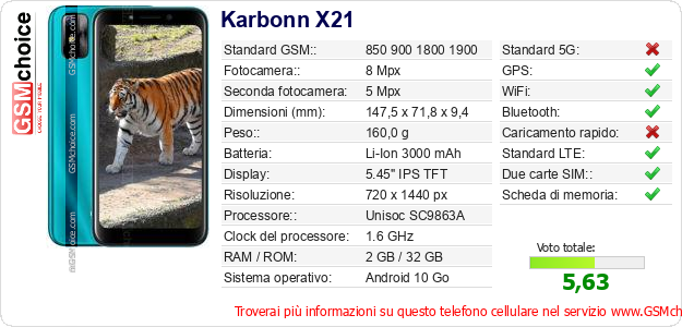 Dati del telefono cellulare Karbonn X21 sul tuo sito