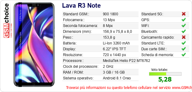 Dati del telefono cellulare Lava R3 Note sul tuo sito