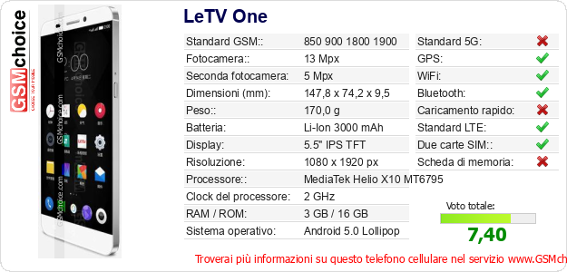 Dati del telefono cellulare LeTV One sul tuo sito