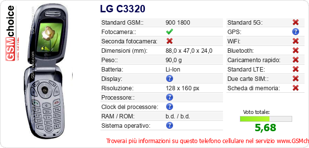 Dati del telefono cellulare LG C3320 sul tuo sito