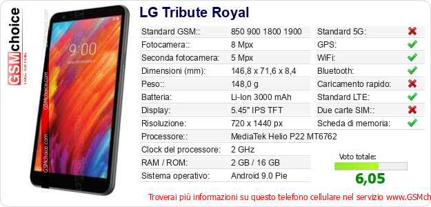 Dati del telefono cellulare LG Tribute Royal sul tuo sito