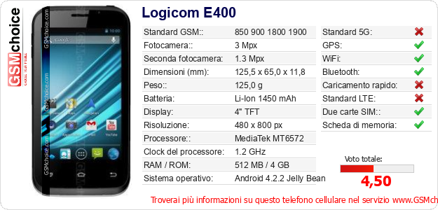 Dati del telefono cellulare Logicom E400 sul tuo sito