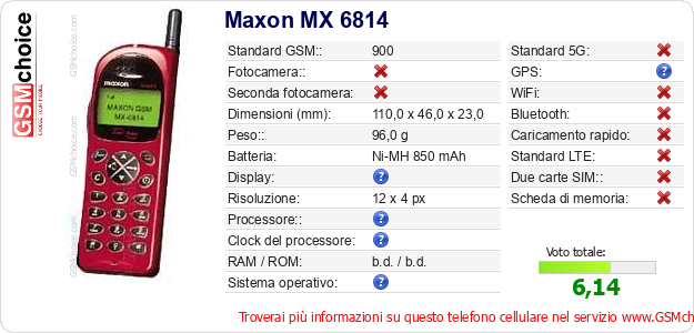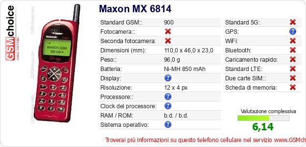 Dati del telefono cellulare Maxon MX 6814 sul tuo sito