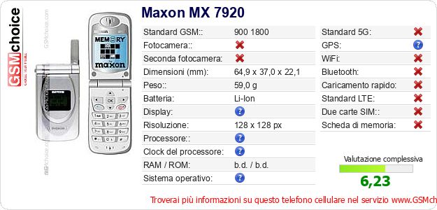 Dati del telefono cellulare Maxon MX 7920 sul tuo sito