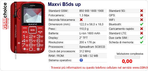 Dati del telefono cellulare Maxvi B5ds up sul tuo sito